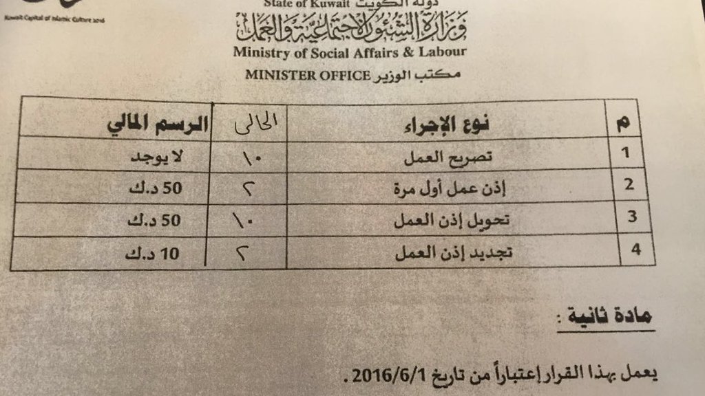 المجلس En Twitter الشؤون رفع رسوم اجراء إصدار إذن عمل أول مرة من 2 دينار الى 50 دينار وتجديد اذن العمل من 2 دينار الى 10 دنانير