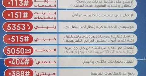 جميع الاكواد التي ستحتاجها على شبكة Ooredoo اوريدو الجزائرية