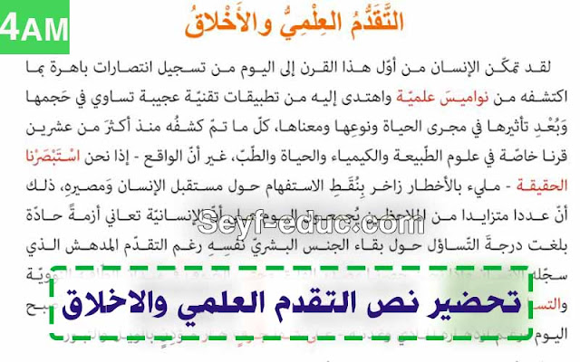 تحضير نص التقدم العلمي والاخلاق للسنة الرابعة متوسط الجيل الثاني