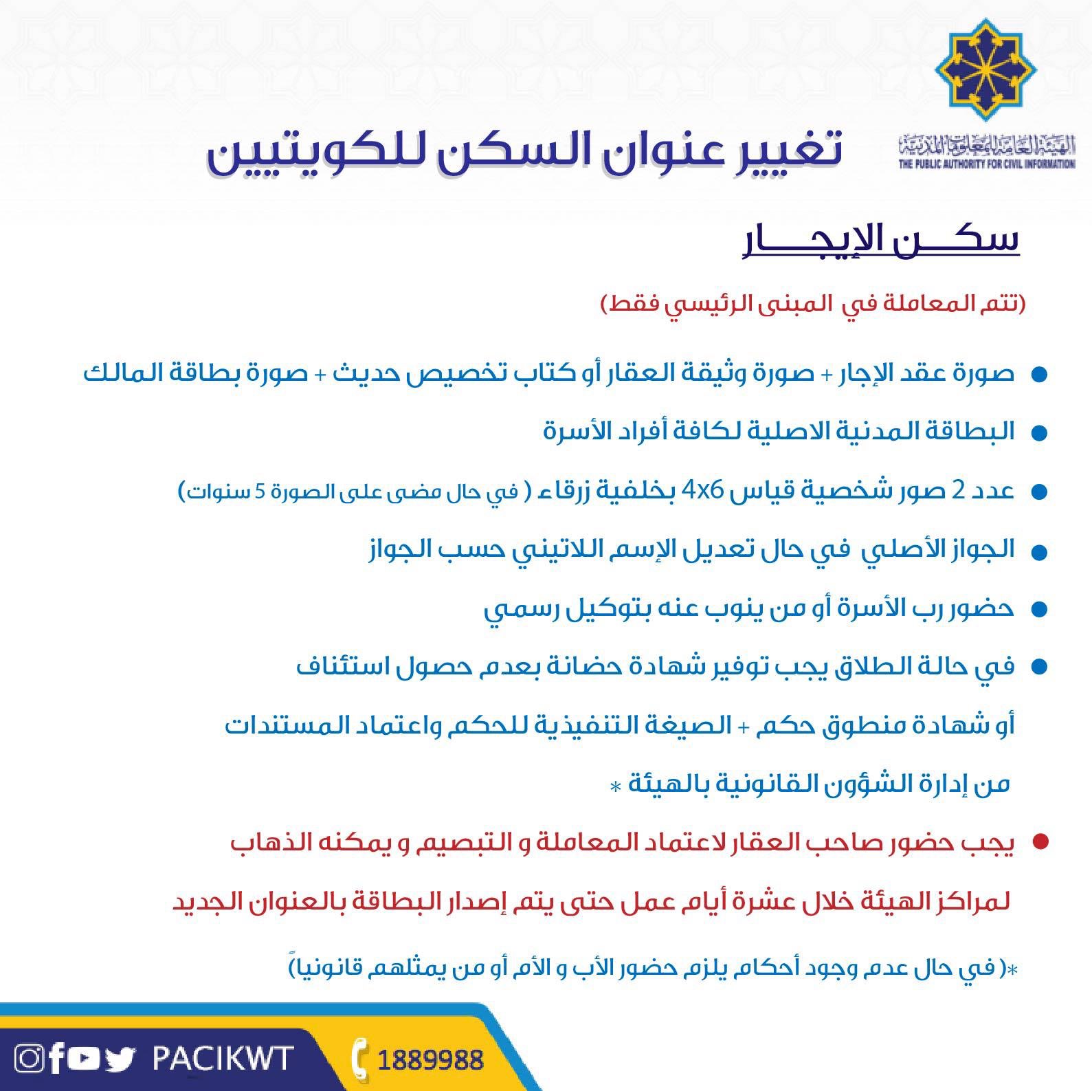 الهيئة العامة للمعلومات المدنية Na Twitteru المستندات المطلوبة لإجراء معاملة تغيير العنوان المعلومات المدنية