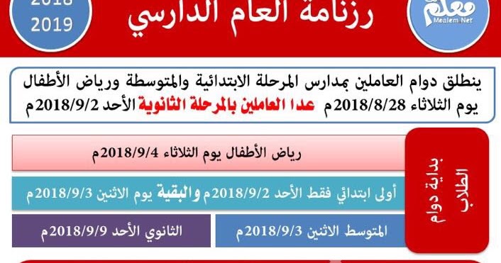 الكويت ننشر رزنامة العام الدراسي القادم ٢٠١٨ ٢٠١٩م