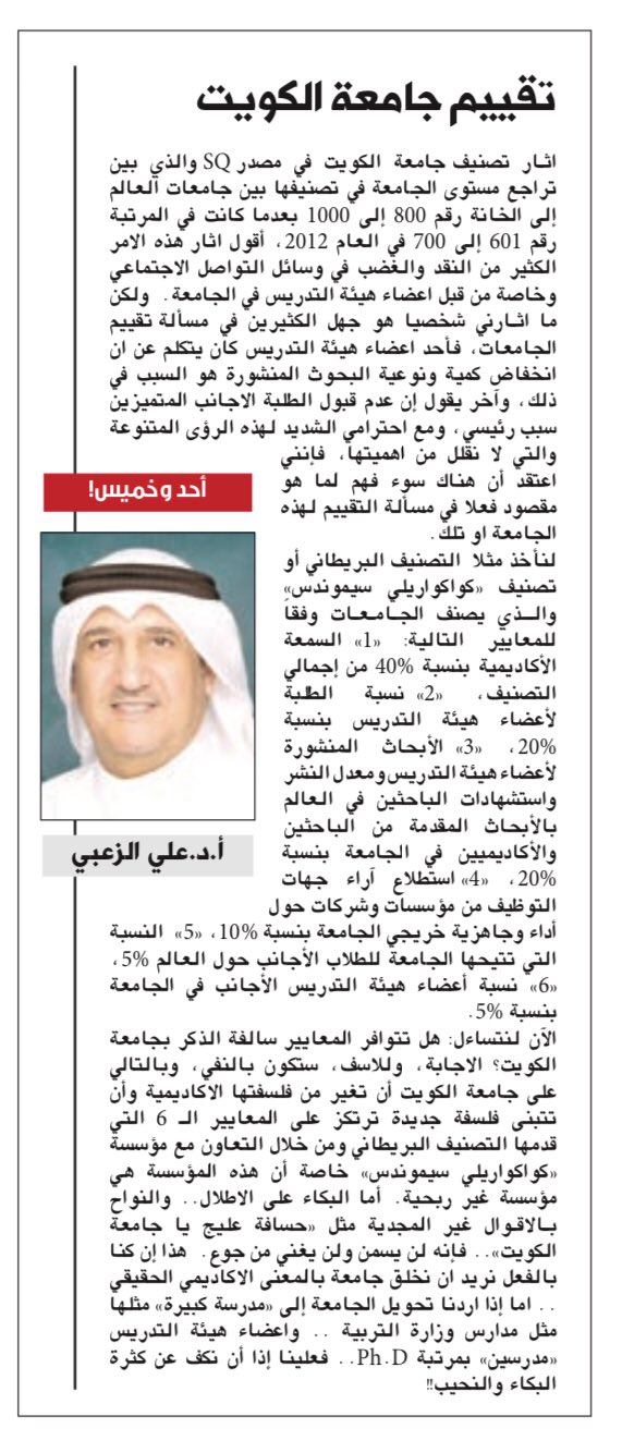 أ د علي الزعبي A Twitter مقالنا لهذا اليوم تقييم جامعة الكويت