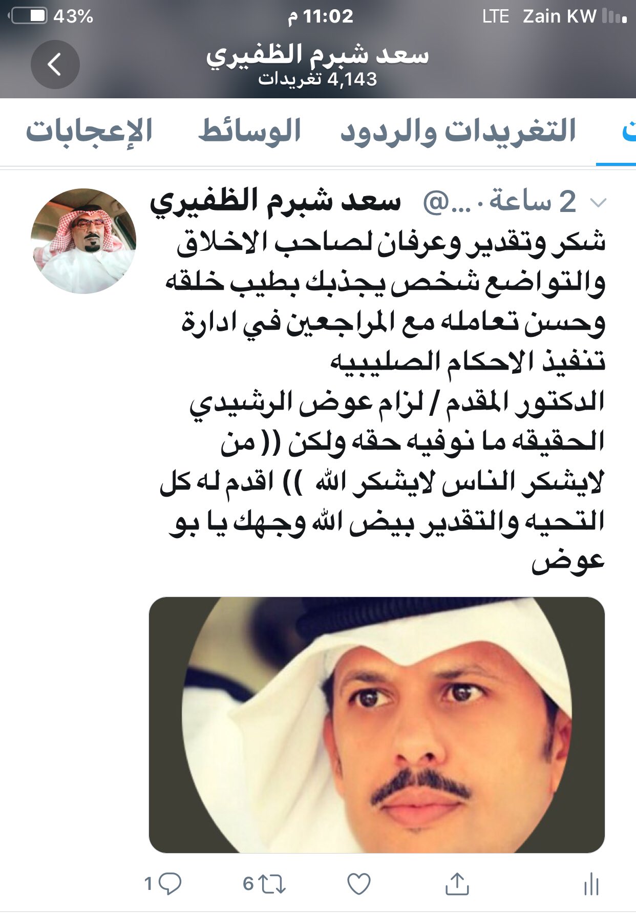 سعد شبرم الظفيري On Twitter شكر وتقدير وعرفان لصاحب الاخلاق والتواضع شخص يجذبك بطيب خلقه وحسن تعامله مع المراجعين في ادارة تنفيذ الاحكام الصليبيه الدكتور المقدم لزام عوض الرشيدي الحقيقه ما