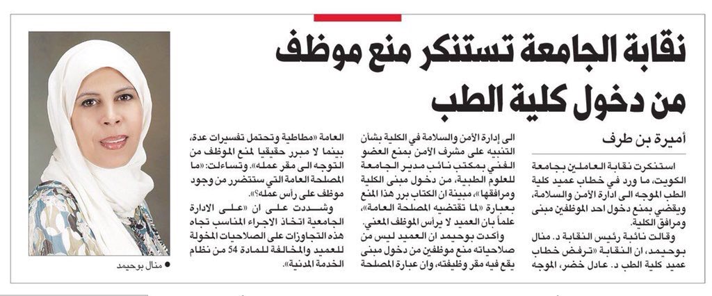 المجلس En Twitter القبس نقابة العاملين في جامعة الكويت تستنكر منع موظف من دخول كلية الطب