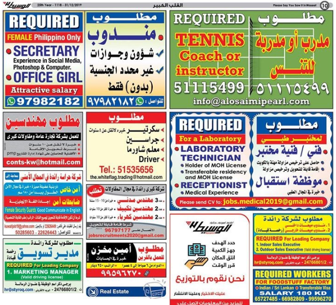 عدد جديد من الوظائف المنشورة بجريدة الوسيط بالكويت اليوم 25 يوليو 2020