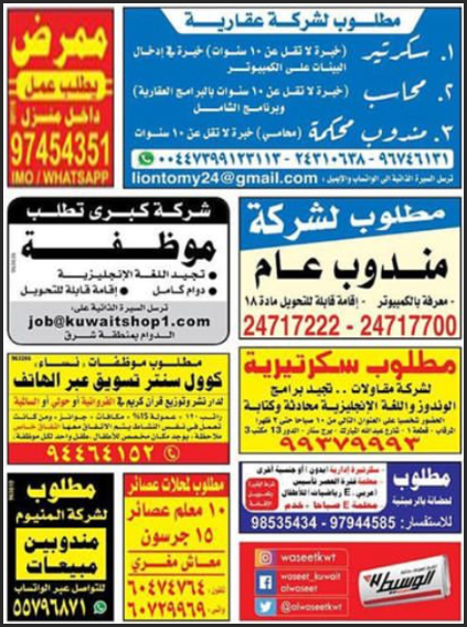 جريدة الوسيط الكويت 2019. اعلانات وظائف جريدة الوسيط الجمعة 22 2 2019 جميع المحافظات القاهرة الاسكندرية الدلتا وظائف منوعة تعرف على احدث الوظائف الخالية وفرص العمل الشاغرة الان وجميع الوظائف المتاحة والمطلوبة في اعلانات وظائف جريدة الوسيط الجمعة 22 2 2019 جميع المحافظات القاهرة الاسكندرية الدلتا. جامعة الكويت وظائف أكاديمية شاغرة جامعة الكويت وظائف اعضاء هيئة تدريس موقع جامعة الكويت الجديد وظائف أكاديمية شاغرة 2020 وظائف جامعة. وظائف شاغرة من جريدة الوسيط الفجيرة الاماراتية اليوم 5 اكتوبر 2019. كانت جريدة الوسيط الكويت البداية لانطلاق واحدة من أقدم وأشهر جرائد الإعلانات بالوطن العربي والشرق الأوسط الجريدة التي كانت الوسيلة الأولى لنشر الإعلانات المبوبة في جميع أنحاء الوطن العربي والعون لملايين من شباب العرب منذ بدء نشر أول عدد لها في الكويت وحتى وقتنا هذا.