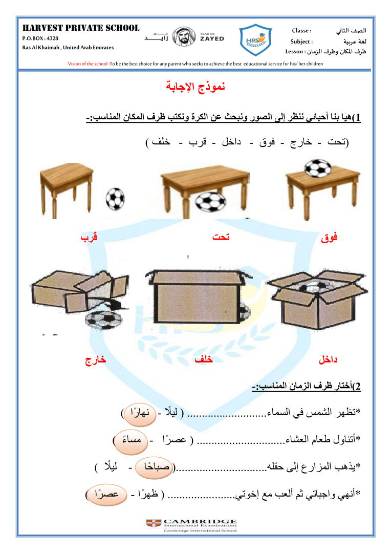 أوراق عمل الجزء 2 ظرف المكان وظرف الزمان للصف الثاني مع الإجابات الصف الثاني الفصل الثاني منتديات صقر الجنوب