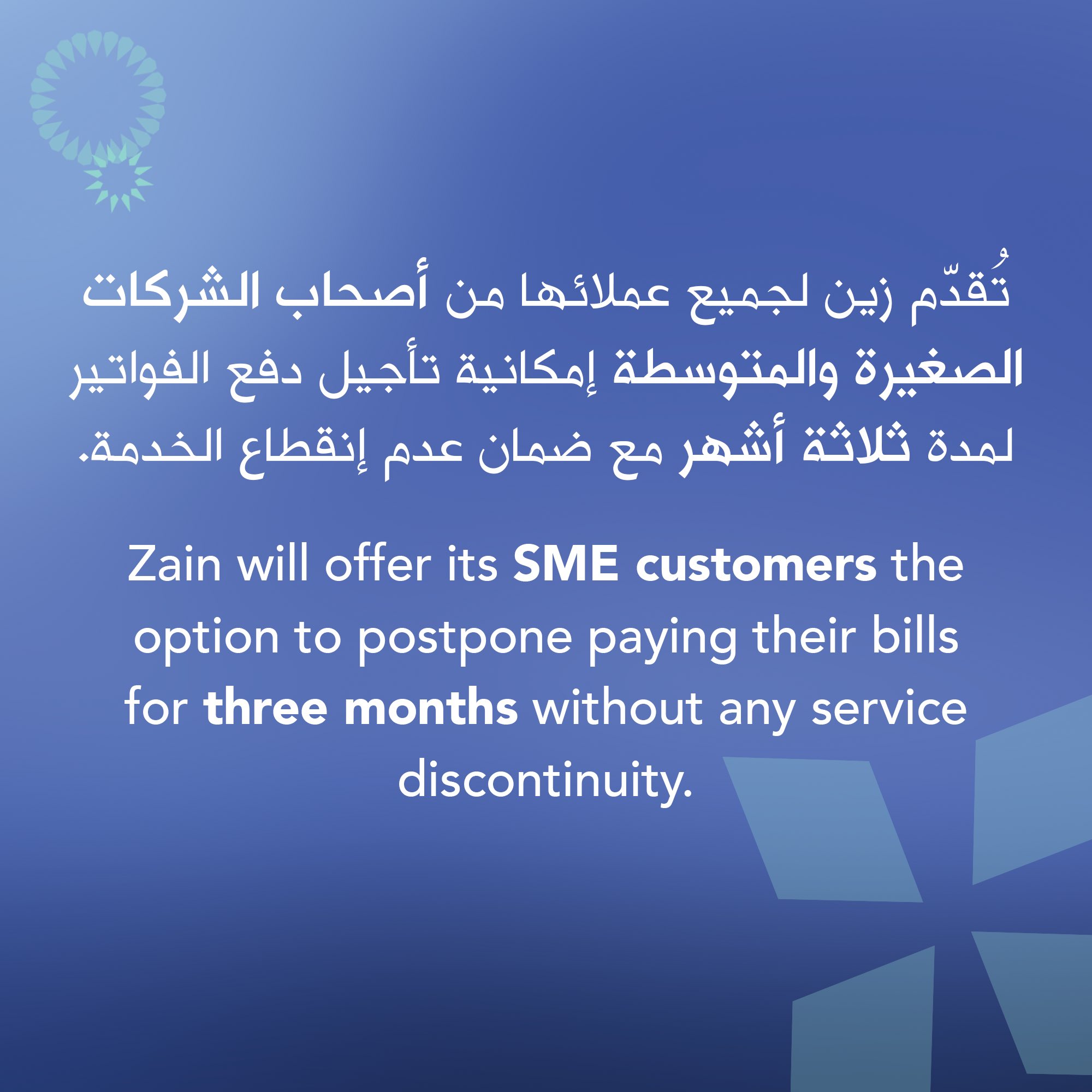 Zain Kuwait On Twitter في ظل الظروف الاستثنائية التي تمر فيها البلاد والتزاما من ا في تفعيل مسؤوليتنا الاجتماعية ت قد م زين لجميع عملائها من أصحاب الشركات الصغيرة والمتوسطة إمكانية تأجيل دفع الفواتير لمدة