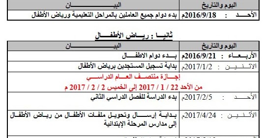 حصري En Twitter الكويت وزارة التربية رزنامة الاجازات و مواعيد الدوام و الاختبارات 2016 2017