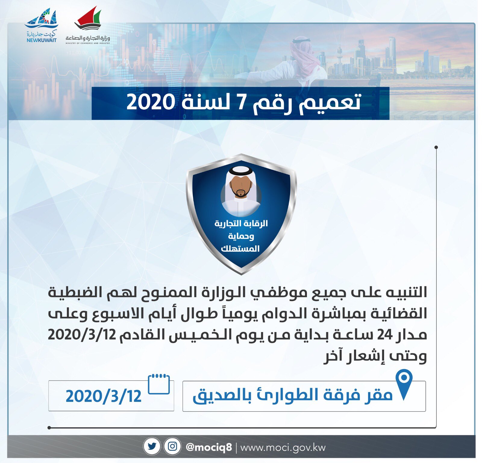 وزارة التجارة En Twitter قرار بإلزامية الدوام اليومي لجميع حاملي الضبطية القضائية على مدار 24 ساعة