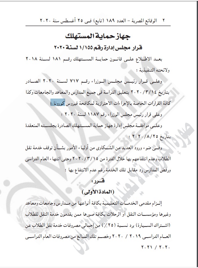 حماية المستهلك يلزم المدارس والجامعات برد 25 من اشتراكات السيارات للطلاب بوابة فيتو