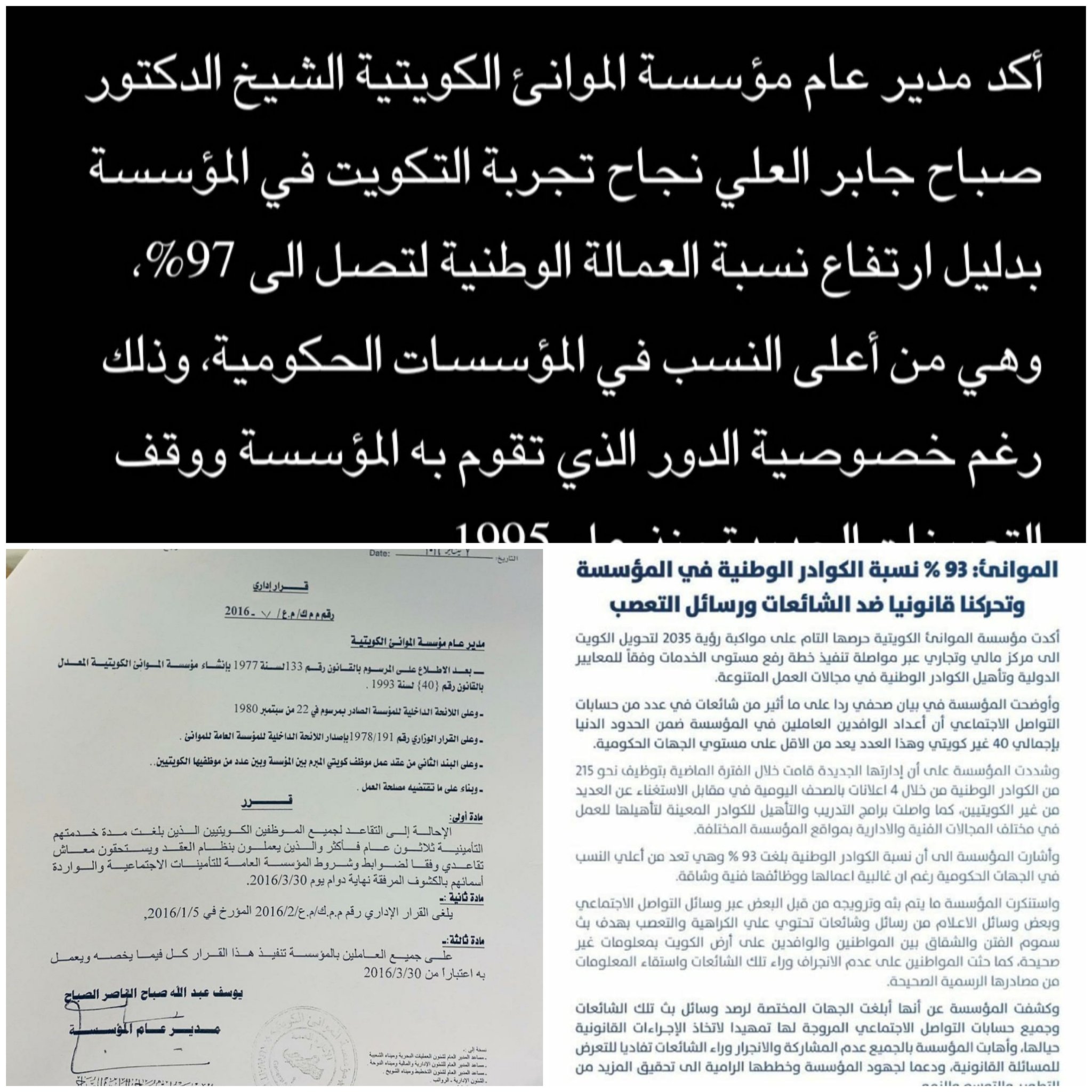 كابتن عصام المذن On Twitter وزارة الخدمات مؤسسة الموانئ الكويتيه بيان الموانئ بالأمس بيان تهديد لمن ينتقدهم وانا أقول لمن أعد البيان لصارت المؤسسه ملكيه خاصه اكتب ماشئت العهد السابق تكويت ٩٧ ولم يحل الكفاءات
