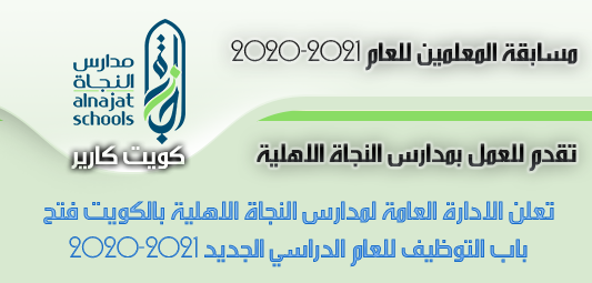 الاعلان الرسمي لمدارس النجاة الكويتية لتوظيف مدرسين ومدرسات من خارج الكويت لعام 2018 2017 والتعاقد معهم للعمل في دولة الكويت والتقديم علي الانترنت في موعد اقصاه 15 3 2017