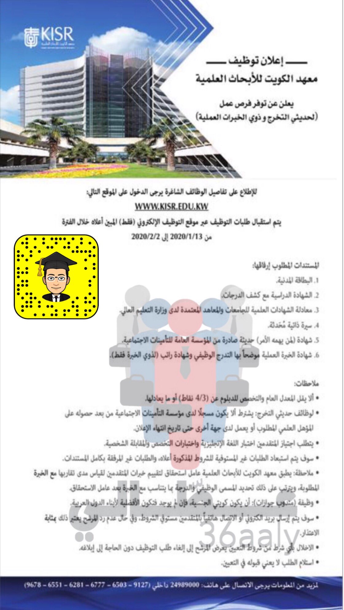 O Xrhsths عط الي Sto Twitter اعلان توظيف في معهد الكويت للأبحاث العلمية لحديثي التخرج وذوي الخبرات التفاصيل والتخصصات المتاحة ستنشر غدا فترة التقديم ١٣ ١ الى ٢ ٢ عطالي Https T Co Fkawnrzh51