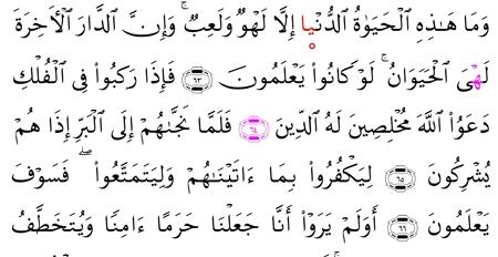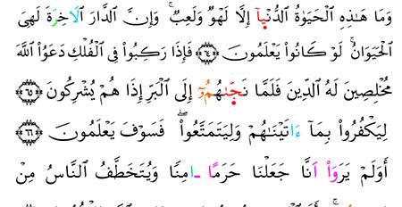 المصحف المحفظ رواية شعبة عن عاصم سورة العنكبوت الآية 64