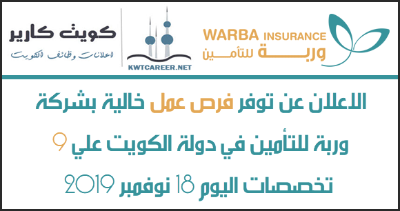 فتح التوظيف بشركة وربة للتأمين بالكويت في 9 تخصصات 18 11 2019