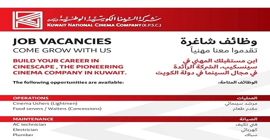 شركة السينما الكويتية الوطنية تعلن عن وظائف خالية Job Vacancies
