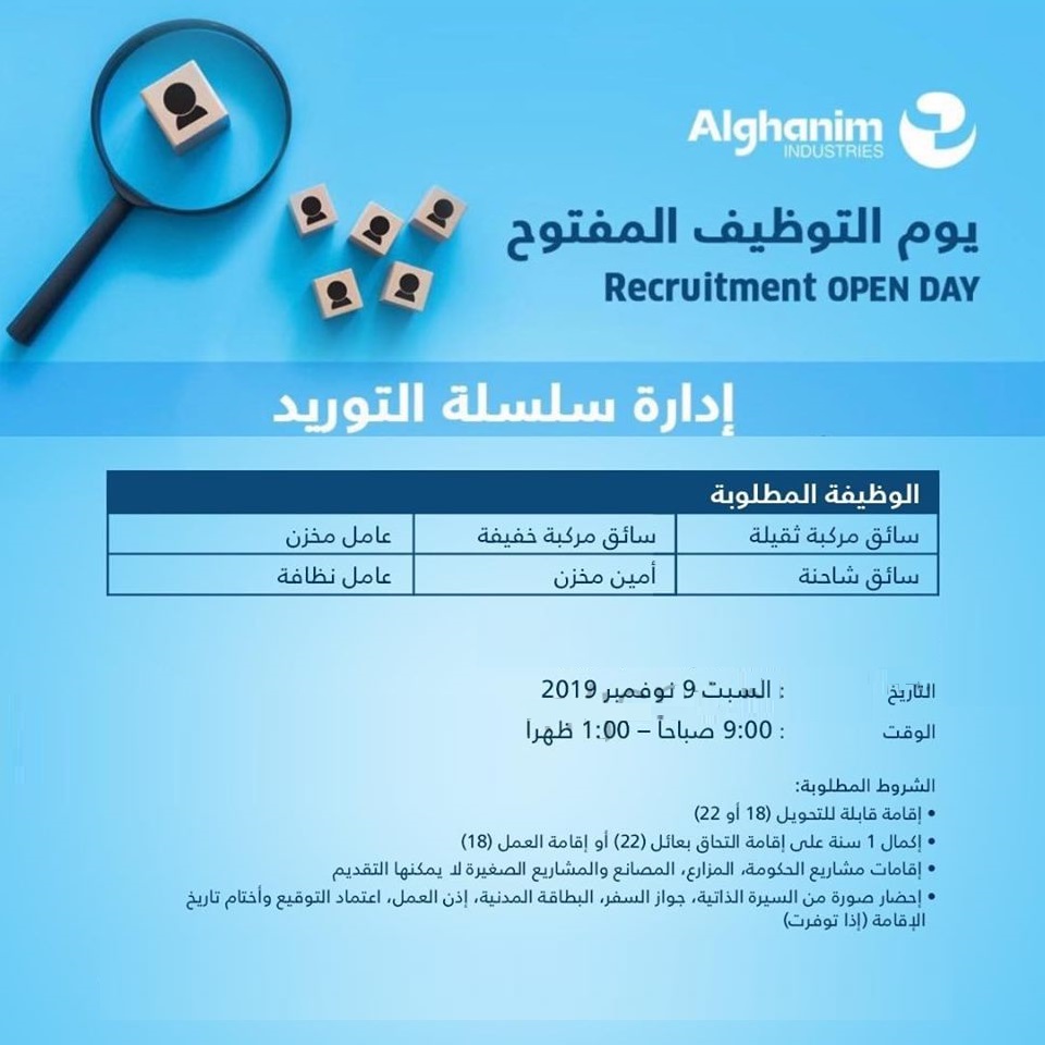 شركة صناعات الغانم يوم التوظيف المفتوح السبت 9 نوفمبر 2019