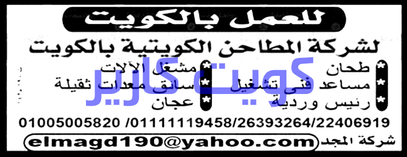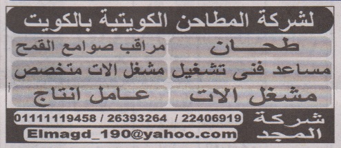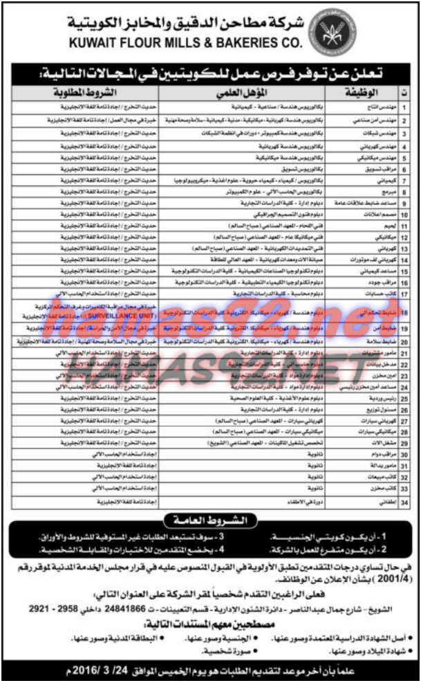 وظائف خاليه وظائف خالية لشركة المطاحن الكويتية بالكويت منشور فى الاهرام 5 6 2015