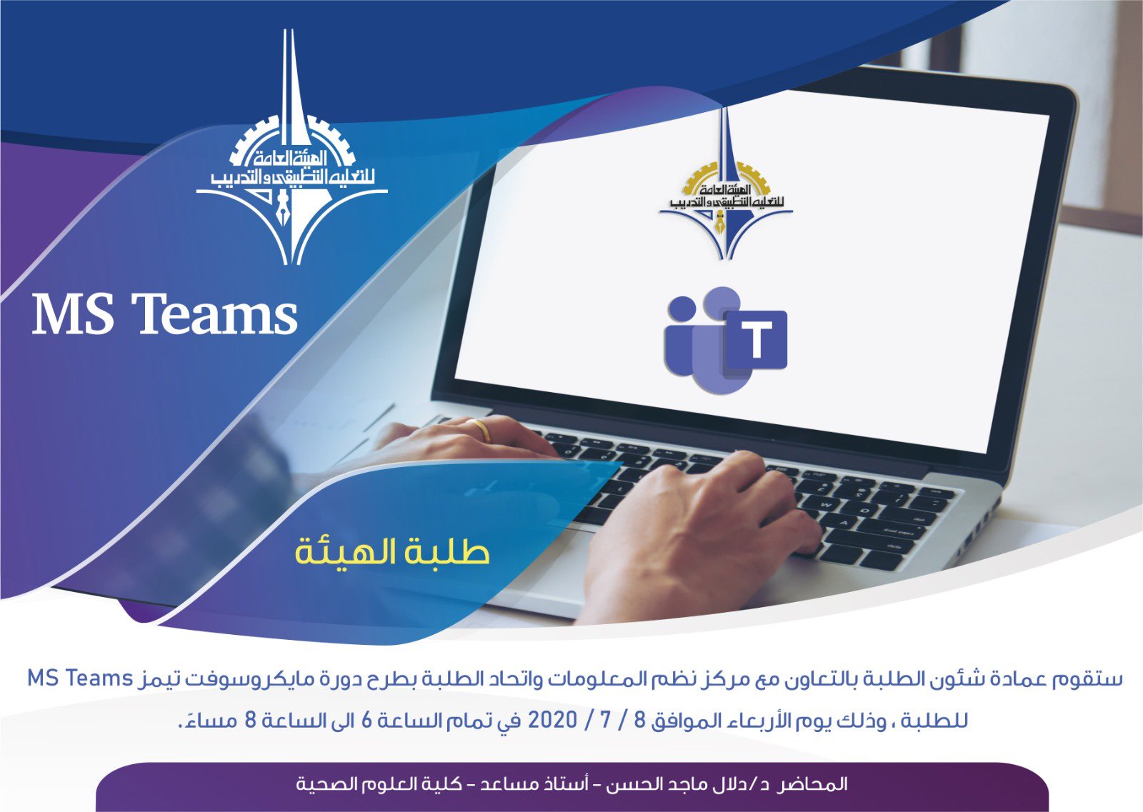 الهيئة العامة للتعليم التطبيقي والتدريب On Twitter تنظم عمادة شئون الطلبة دورة مايكروسوفت تيمز لطلبة الهيئة يوم الثلاثاء الموافق 7 يوليو الجاري في تمام الساعة السادسة وحتى الثامنة مساء الهيئة العامة للتعليم التطبيقي والتدريب Paaet