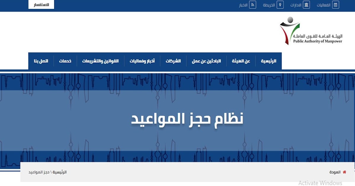 حجز موعد الهيئة العامة القوى العاملة الكويت Manpower Kuwait مغترب أون لاين
