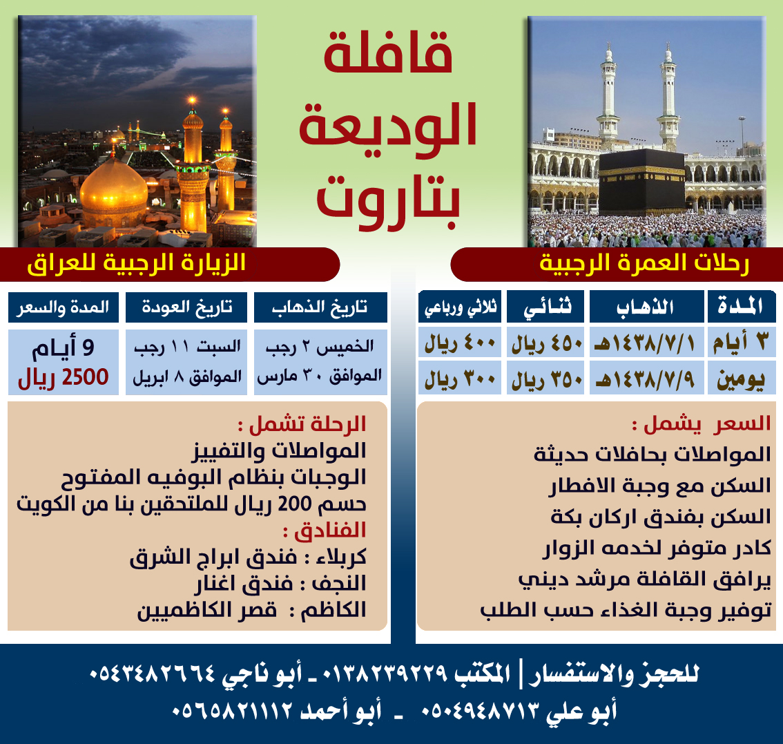 خدمة طوبى عروض قافلة الوديعة للعمرة الرجبية وزيارة العراق