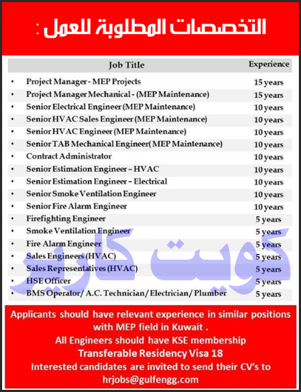 اعلان وظائف شركة الخليج الهندسية الكويتية 3 ديسمبر 2019
