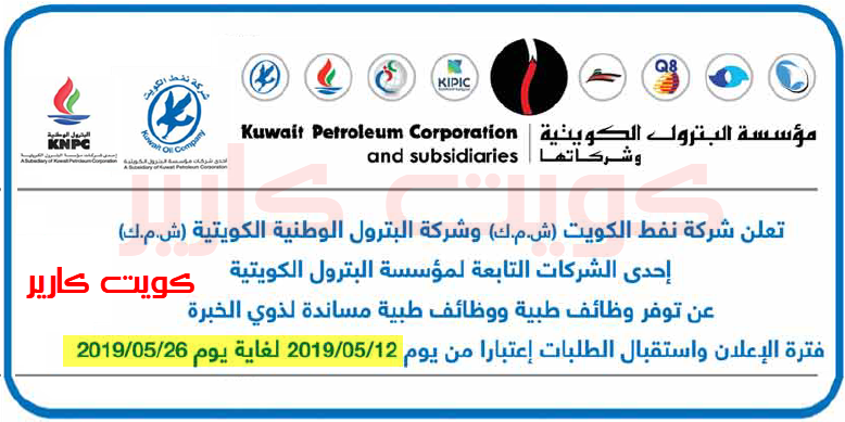 وظائف خالية بمؤسسة البترول الكويتية جميع الجنسيات 12 مايو 2019