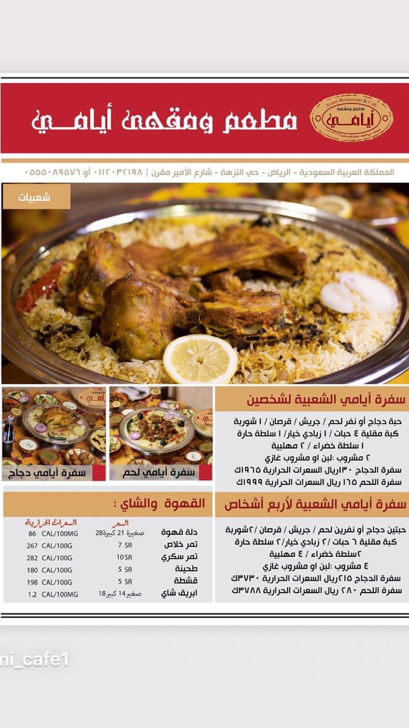 تعرف على منيو مطعم وكافيه أيامي وارقام التواصل وموقعهم
