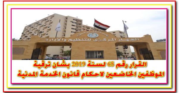 قرار رئيس الجهاز المركزي للتنظيم والإدارة رقم 65 لسنة 2019 بشأن تسكين وترقية الموظفين المخاطبين بأحكام قانون الخدمة المدنية أخبار الوادي الجديد