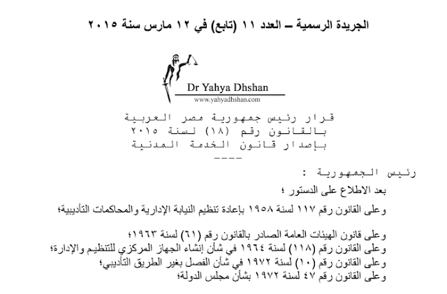 قانون رقم 18 لسنة 2015 باصدار قانون الخدمة المدنية دكتور يحيى دهشان