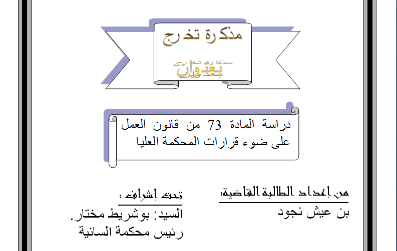 دراسة المادة 73 من قانون العمل على ضوء قرارات المحكمة العليا Pdf
