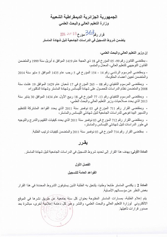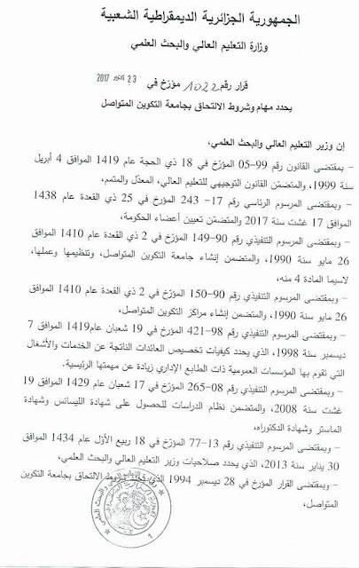 قرارات وزارة التعليم العالي والبحث العلمي الجزائر