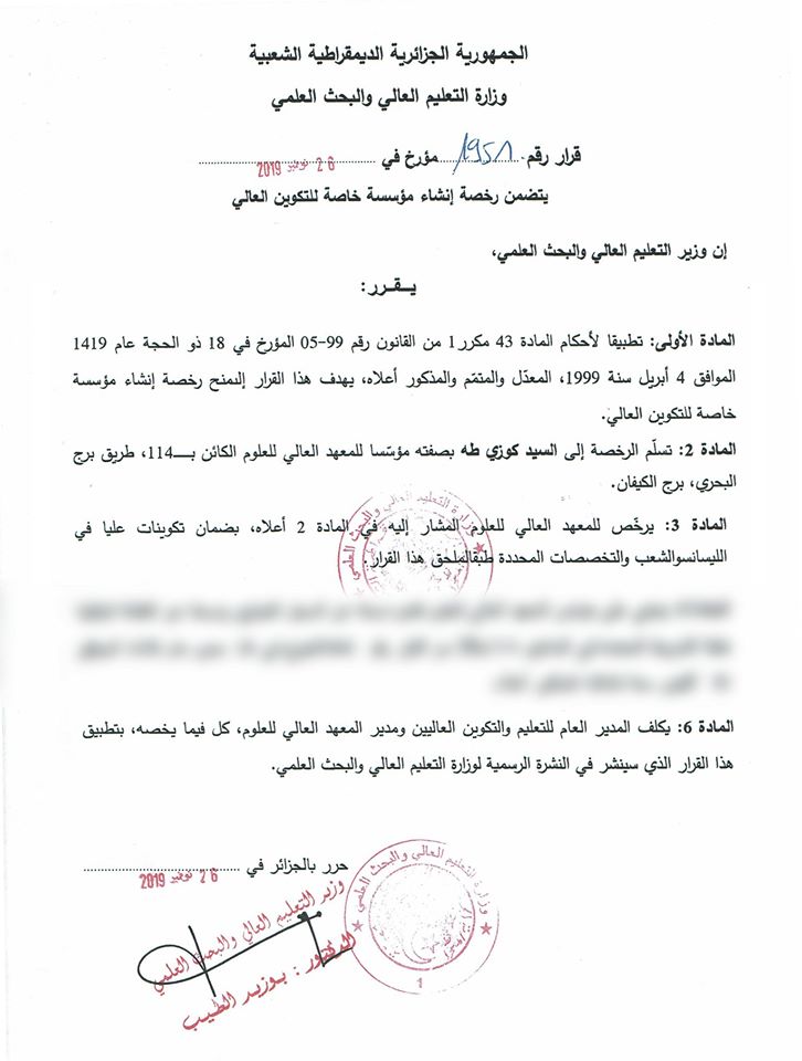 المعهد العالي للعلوم أول جامعة خاصة في الجزائر