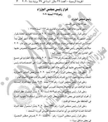 قرار رئيس مجلس الوزراء المصري رقم 1246 لسنة 2020 برفع حظر التجول بداية من 27 6 2020 والتدابير المتبعة بعد الغاء الحظر Chair Of Constitutional And International Law