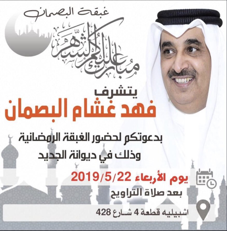 خبر طازج V Twitter يدعوكم رجل الأعمال فهد غشام البصمان على الغبقة الرمضانية في منزله الجديد في أشبيليا اليوم الاربعاء البصمان غبقة فهد غشام البصمان Https T Co Cdfemymody