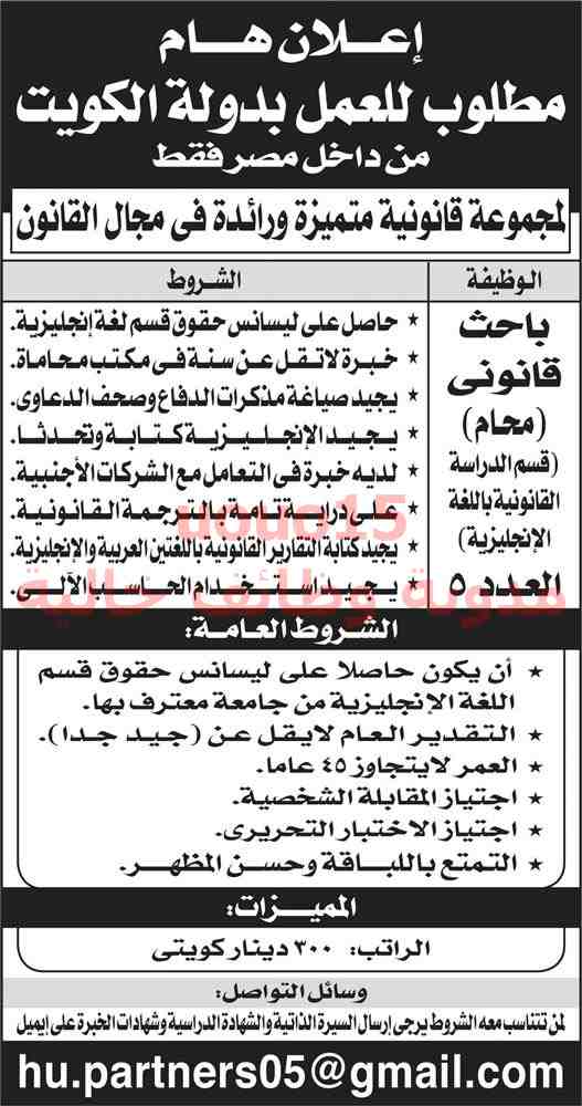وظائف محامين بالكويت من الاهرام الجمعة 25 1 2019 وظائف خاليه