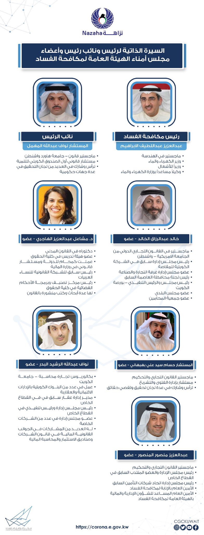 مركز التواصل الحكومي On Twitter السيرة الذاتية لرئيس ونائب رئيس وأعضاء مجلس أمناء الهيئة العامة لمكافحة الفساد نزاهة Cgckuwait