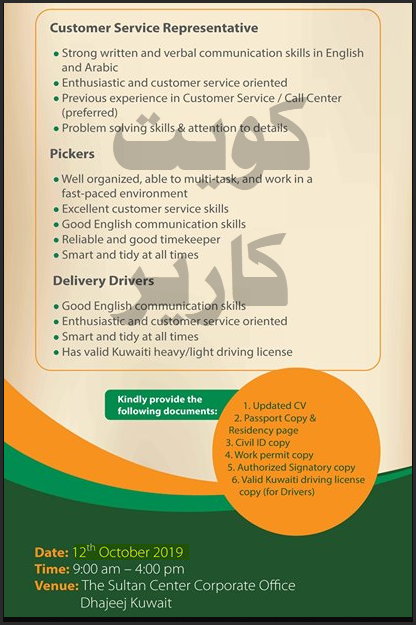 فرص عمل في مركز سلطان الكويت بنظام المقابلات المباشرة 12 10 2019