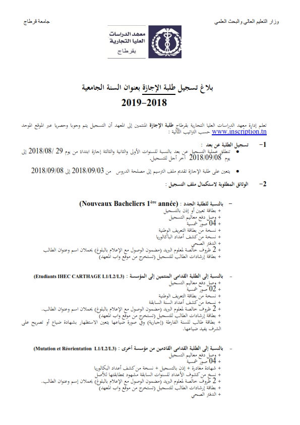 تسجيل طلبة معهد الدراسات العليا التجارية بقرطاج للسنة الجامعية 2018 2019 ع أورينتيني توجيه تونس