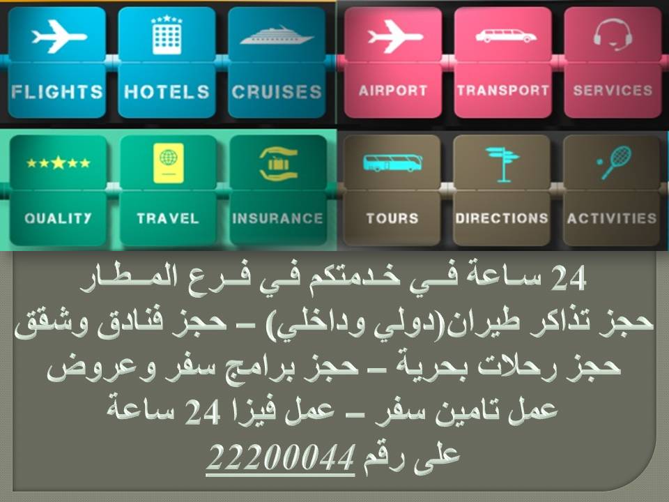 حجزك بأمان قم بزيارة افرعنا أو اتصل بنا 22406004 الرئيسي 22415451 الدوليه 24866814 الصليبخات 90979740 خط المسا Instagram Posts Instagram Site