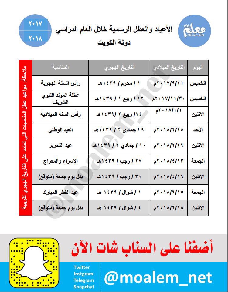 الأعياد والعطل الرسمية خلال العام الدراسي 2018 2017