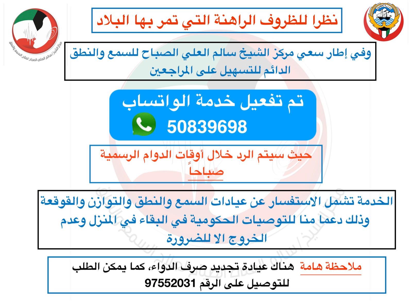 عبدالكريم العبدالله Di Twitter مركز الشيخ سالم العلي للسمع والنطق يفعل خدمة التواصل عبر الواتساب للتسهيل على المراجعين الاستفسار عن عيادات السمع والنطق والتوازن والقوقعة دعما للتوصيات الحكومية للبقاء في المنزل