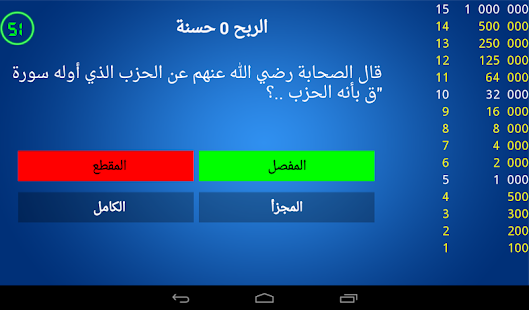 تحميل البرنامج الدينى من سيربح المليون حسنة بديل لعبة من سيربح المليون يعمل على Android و Ios الاسلام ديني