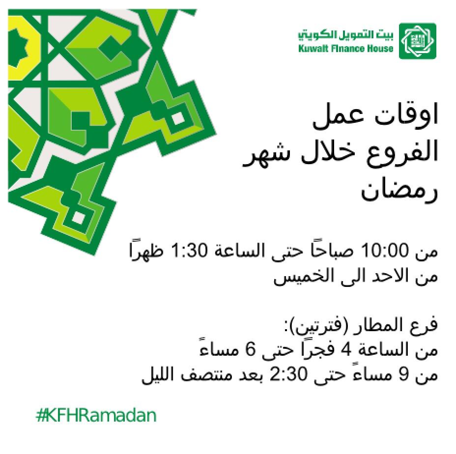 Kuwait Finance House على تويتر السلام عليكم هنا مواعيد العمل في رمضان تويتر Https T Co Vbhnpaev7a أسعدنا تواصلك وموجودين بالخدمة دائما