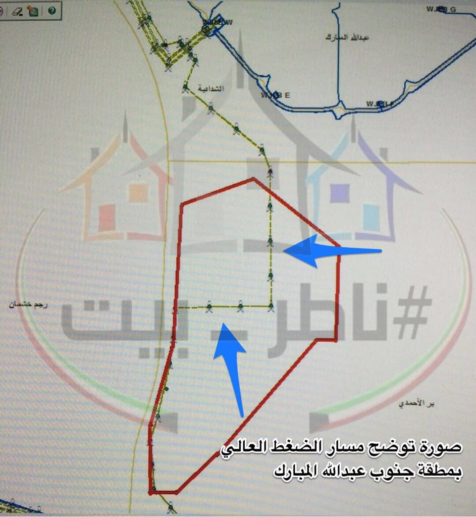 ناطر بيت On Twitter صورة توضح مسار الضغط العالي في مشروع جنوب عبدالله مبارك ونتمنى من وزارة الكهرباء إيجاد الحل المناسب ناطر بيت Https T Co Cntw1ll9sa