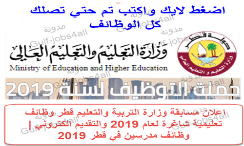 اعلان مسابقة وزارة التربية والتعليم قطر وظائف تعليمية شاغرة لعام 2019 والتقديم الكتروني وظائف مدرسين في قطر 2019