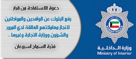 رفع البلوك عن المواطنين والوافدين لمدة أسبوعين لانجاز معاملاتهم في المرور والبلدية وغيرها