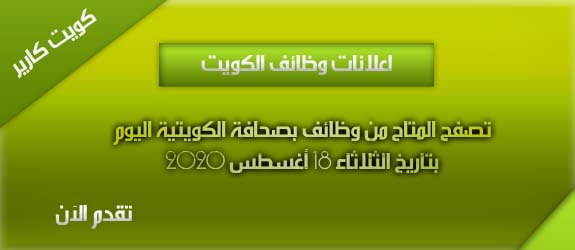اعلانات وظائف الصحافة اليومية الكويتية بعدد الثلاثاء 18 أغسطس 2020