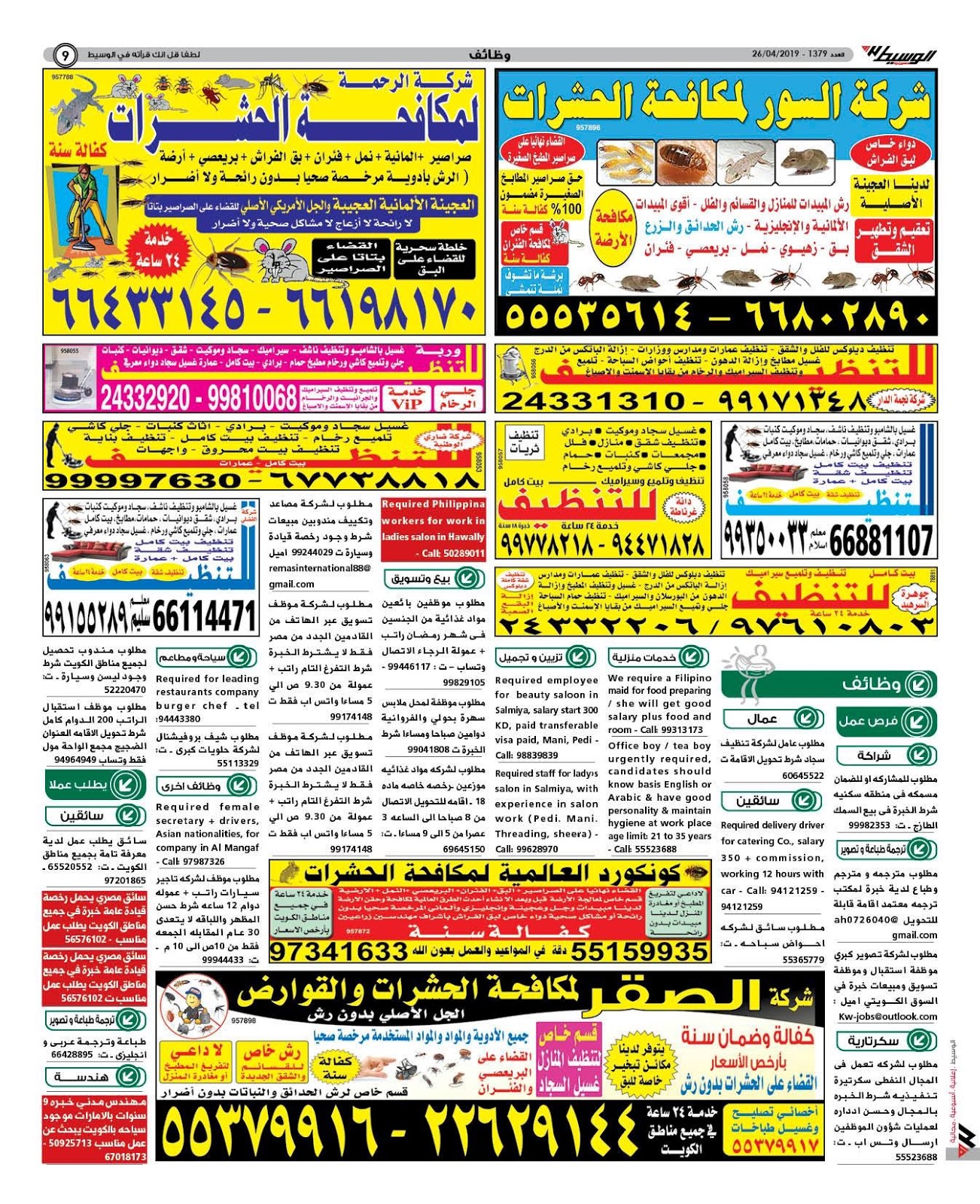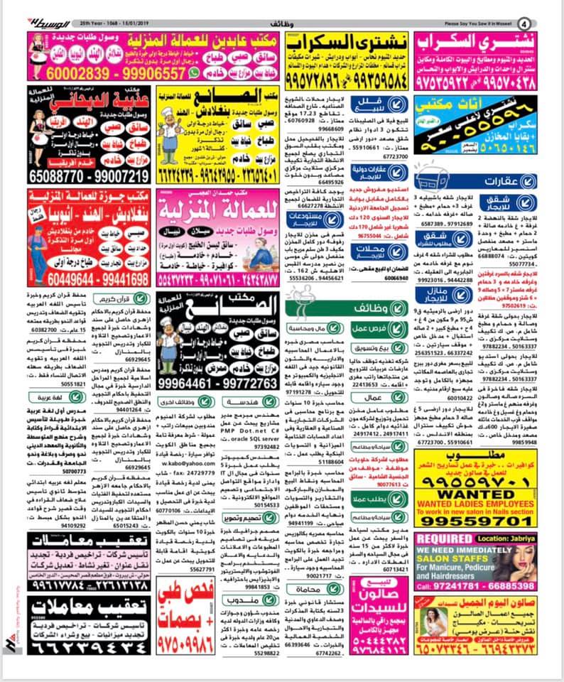 وظائف جريدة الوسيط الكويتية الجمعة 2019 07 5 Waseet Newspaper Jobs In Kuwait